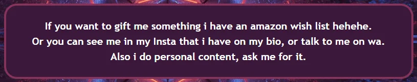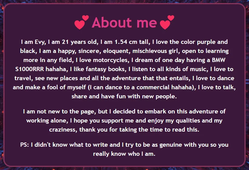 Canzana, Palmadas, Dança Erótica, Pata de Camelo, Fingering, Couro, Dildo ou Vibrador, Striptease, Fumar, Brinquedos Sexuais, Brinquedos para Mamilos, Felácio, Amordaçar, Nylon, Masturbação, Látex, Twerking, Foda de mamas, Cozinha, Ahegao, Classificação de Paus, Conversa porca, Humilhação, Fetiche por Pés, Ao Ar Livre, Creampie